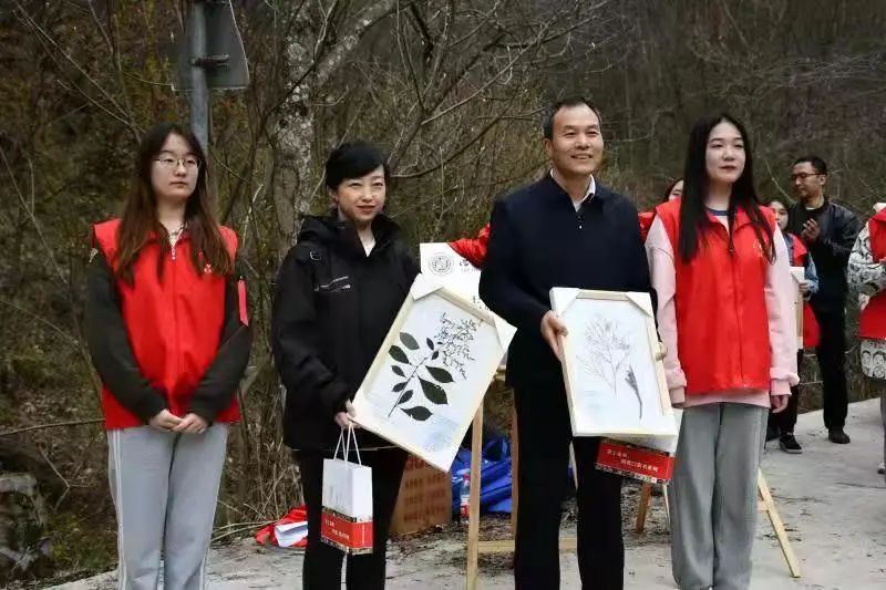 随后,段小龙书记和吕建荣副书记共同为“共青团yl9193永利集团委员会大学生社会实践基地”揭牌,李保国教授和成鸿飞副局长为“永利集团生命科学与医学部青年志愿者生态守护林”揭牌。团员代表还向各位老师赠送了同学们亲手制作的植物标本纪念品。最后,段小龙书记寄语支部全体团员——“保护秦岭生态,青年责无旁贷”,体现了对支部团员青年开展秦岭生态保护的殷切希望。