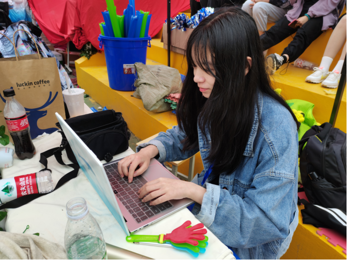 同样做着记录工作的还有宣通部的写稿人员,他们用文字,将赛场的精彩瞬间渲染,传达给每一个人。