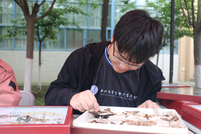 学习部的小姐姐小哥哥们为有疑问的同学解答问题,回答到所有展示的昆虫都是生科人辛苦的野外实践的获得物。