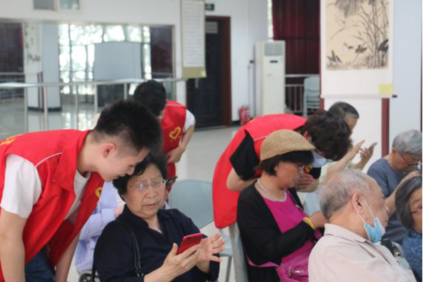 本次活动由我院志愿者为前来参加活动的老人讲解使用手机的一些基本功能。本次培训的主要内容包括:回顾手机亮度的调节、连接WiFi和数据网络、添加联系人、下载和更新软件、设置闹钟、关注微信公众号和疫苗预约等功能,现场教授二维码加好友、微信支付、接打语音视频、公交地铁乘车码、健康码等内容。同时,为了让老年人更好的能够学习课程的内容,来自青协的六位志愿者协助社区工作人员,进行一对一帮助,以提升老年人的学习效率。