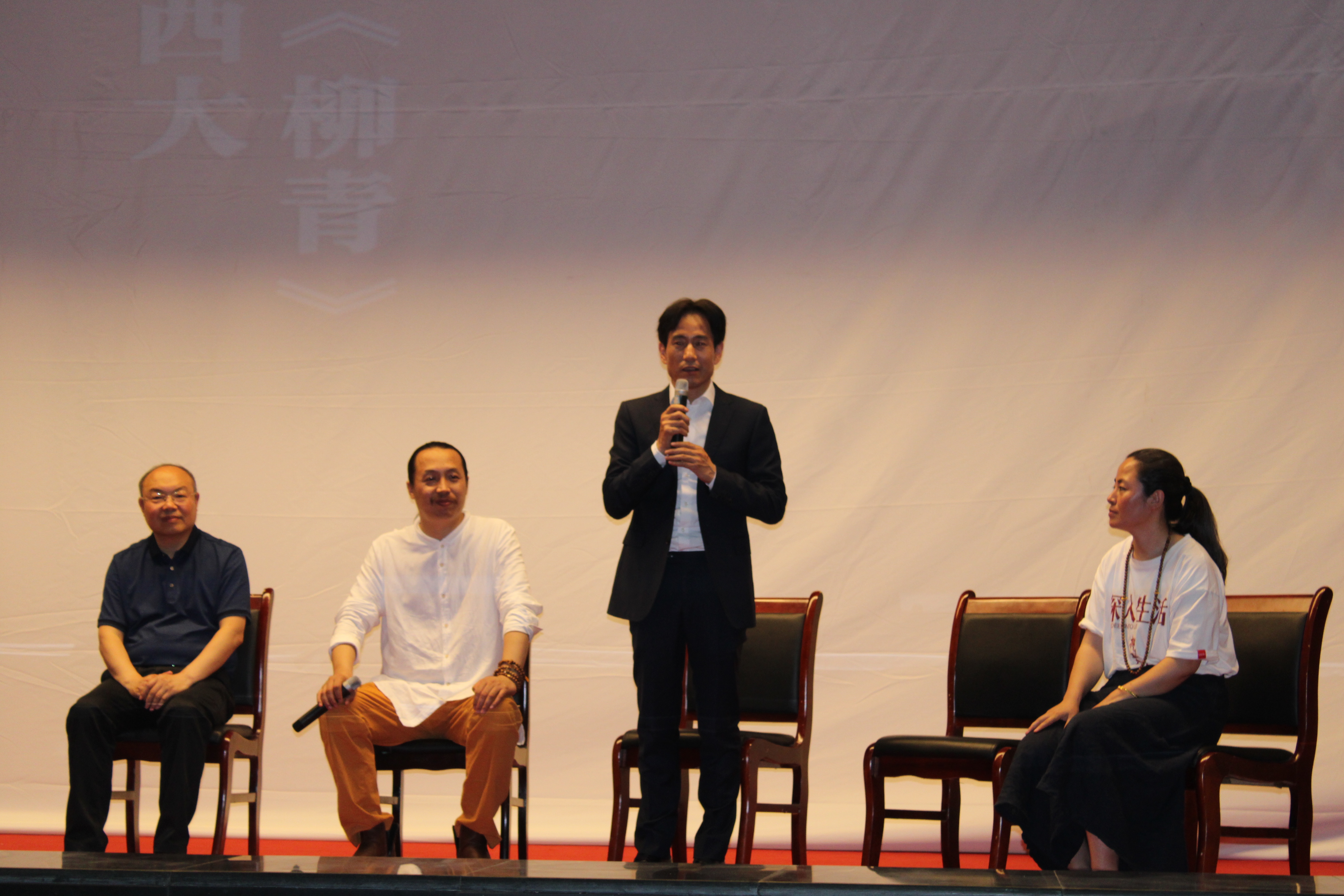 观影环节结束后,田波、成泰燊、王苗霞等团队成员讲述了影片拍摄过程中的故事与感想,导演田波回顾了在我校拍摄这部电影的经历,经历向我校为这部电影提供的帮助表示感谢;主演成泰燊讲述了自己的拍摄经历以及对柳青这个人物独有的体会;制片人王苗霞与大家分享了在电影拍摄时遇到的困难;柳青女儿刘梅风女士也谈到了她对于这部电影态度的转变。