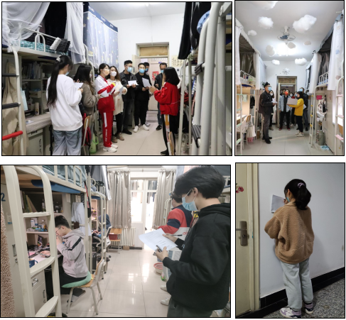 检查评比过程中,辅导员和学生干部们分组进行宿舍检查,辅导员们叮嘱学生严格按照学校疫情防控工作要求,做好宿舍的卫生清洁、开窗通风、消毒杀菌和晨午检上报工作,提示同学们合理安排就餐与洗浴时间,合理安排学习与生活作息,尽快适应封闭管理下的校园生活。