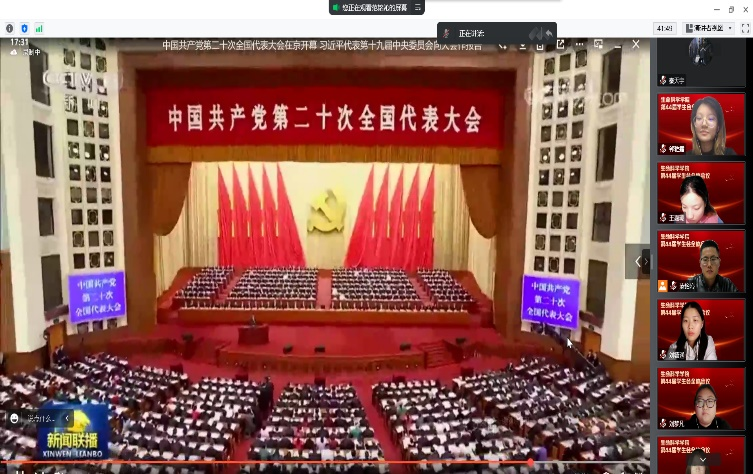 会议伊始,参会人员集体观看了党的二十大开幕会。中国共产党第二十次全国代表大会,是在全党全国各族人民迈上全面建设社会主义现代化国家新征程,向第二个百年奋斗目标进军的关键时刻召开的一次十分重要的大会。此次大会高举中国特色社会主义伟大旗帜,弘扬伟大建党精神,并呼吁同学们自信自强,守正创新,踔厉奋发,勇毅前行,为全面建设社会主义现代化国家,全面推进中华民族伟大复兴而团结奋斗。