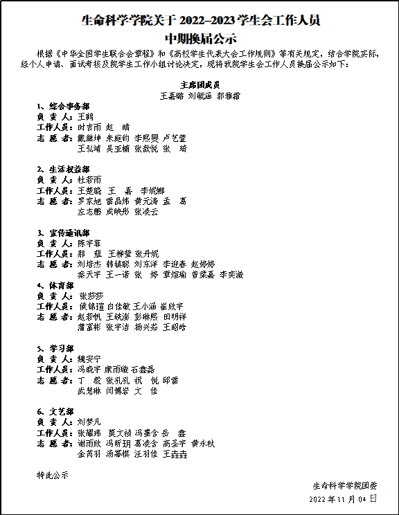 2022年11月4日晚,我院于线上举行第44届学生会全体会议暨党的二十大精神学习会。此次会议由学院团委副书记范铭沁老师主持,学生会全体工作人员参与。