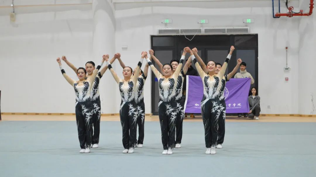 11月25日下午,由我校体育运动委员会主办,体育教研部、学生工作部(处)、校团委联合承办的2023年“青春杯”健美操比赛在长安校区彩虹体育馆举行。我院健美操队队员全心投入,伴着激昂的旋律舞动跳跃,青春洋溢,活力四射,最终以9.24分的傲人成绩,拿下此次比赛的第一名,获得校级一等奖的荣誉,这也是我院连续第三年获得一等奖的好成绩。