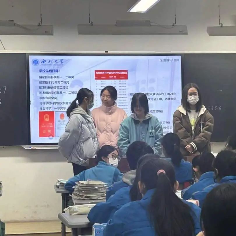 1月15日,由学院黄思霖、晏宁等同学组成的“传承西大精神”返校宣讲队前往西安市长庆二中开展招生宣讲。