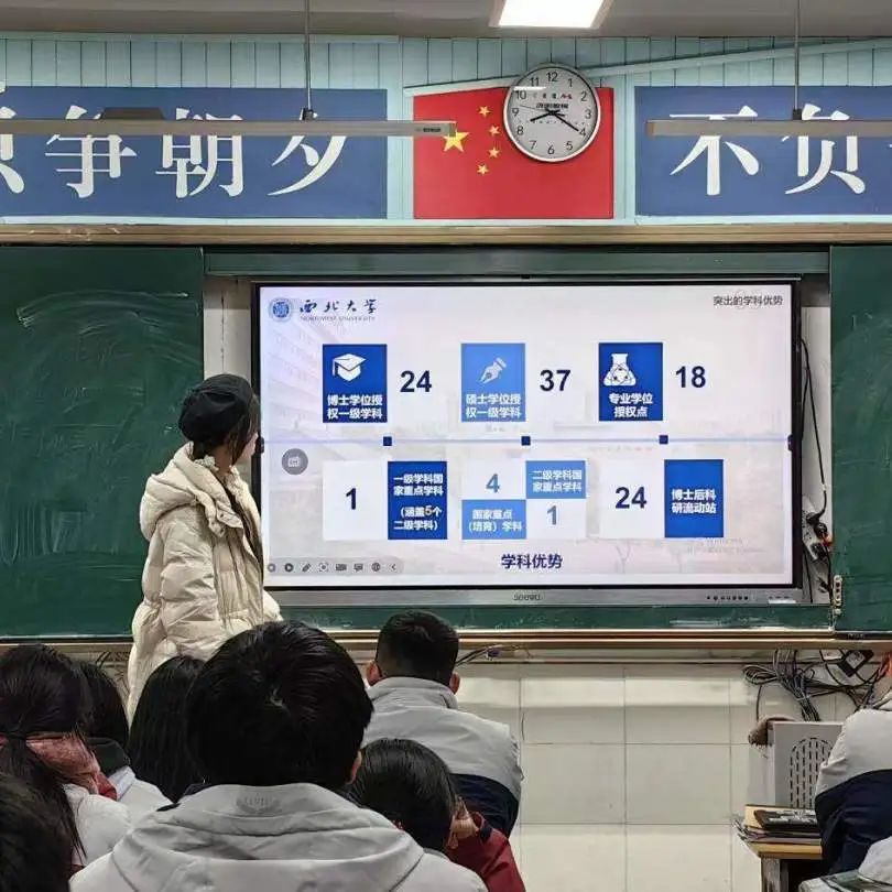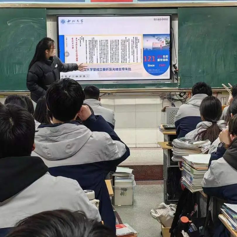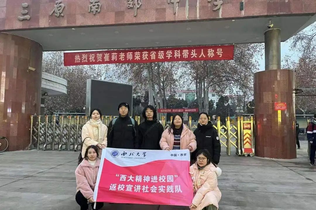 1月19日,由学院阴文洁担任队长,多专业同学参与组成的“西大精神进校园”宣讲队前往陕西咸阳中学开展招生宣讲。