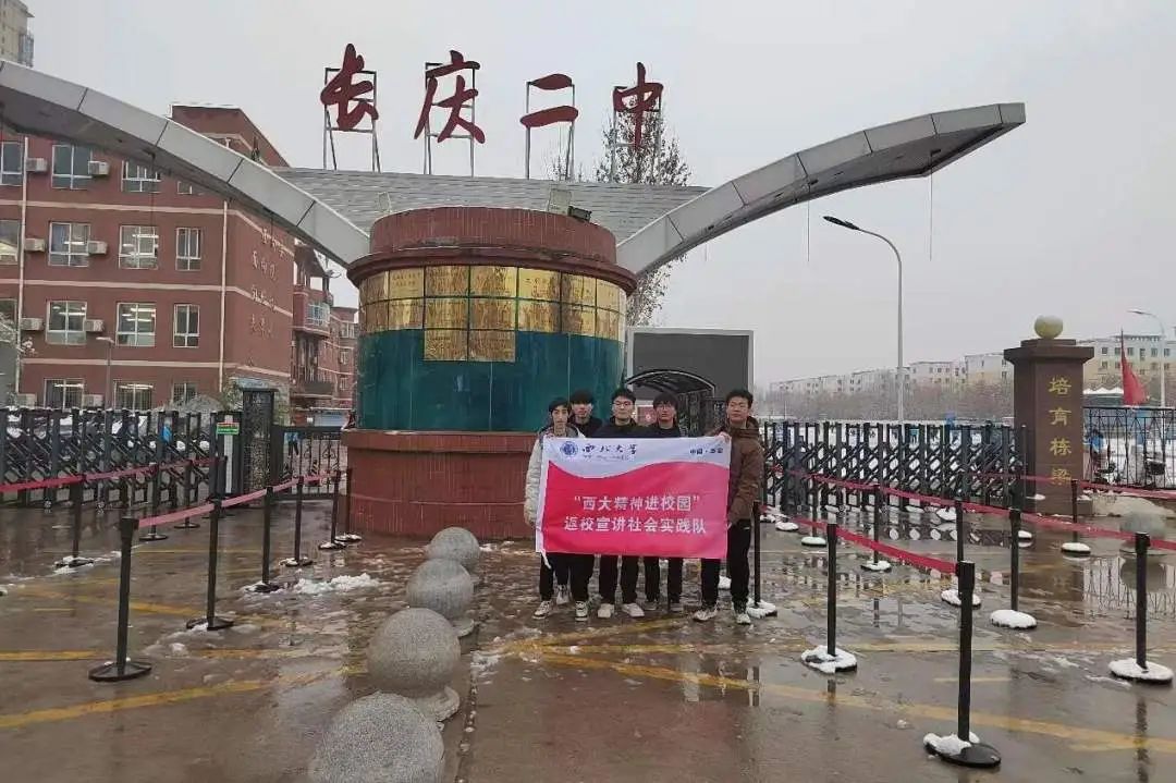 1月23日,由学院赵恒力担任队长,多专业同学参与组成的“西大精神进校园”返校宣讲队前往陕西省宝鸡市千阳中学开展招生宣讲。