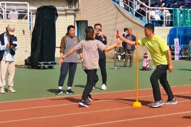 在激动人心的接力赛场上,八位教师如同精密的齿轮,一棒接一棒,展现出了无懈可击的默契配合。每一位老师都以满腔的热情和坚定的意志,全力以赴地奔跑着。每一次棒与棒之间的传递,不仅仅是接力棒的交接,更是信任与希望的延续,它们如同火炬一般,在每一位老师手中传递,照亮了永不放弃的精神和团结的力量。