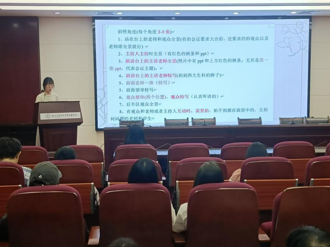 本次培训交流会由学术部、宣传部及编辑部负责人主讲,分别从摄影技巧、新闻稿撰写以及会议室设备调试三方面分享了自己的经验心得。