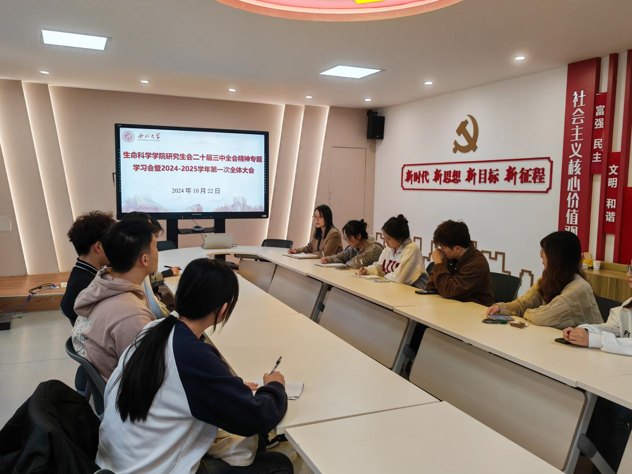 10月22日下午,yl9193永利集团研究生会二十届三中全会精神专题学习会暨2024-2025学年第一次全体大会在博雅会议厅召开,辅导员张芝榕、院研究生会各部门负责人参加了此次会议。