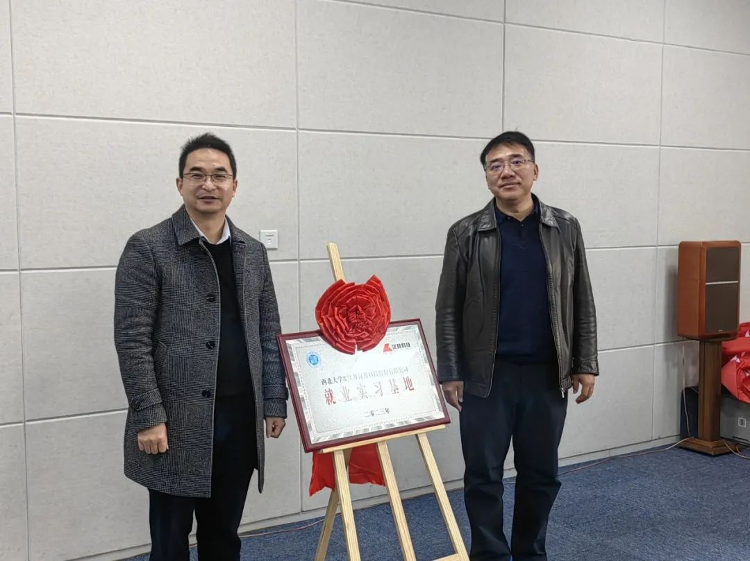 11月25日,一行前往江苏汉邦科技股份有限公司、江苏今世缘酒业股份有限公司调研交流,淮安市人才中心引进科科长孙毅、办公室主任杨恩才陪同调研。汉邦公司调研中,在管理部部长孙亚东的带领下,一行参观了公司生产车间、精密加工车间、总装车间等,深入了解了汉邦公司的生产与运营模式。交流会上,汉邦沈健增总监、孙亚东部长对一行的到来表示欢迎,回顾了与学院色谱方面老师的合作友谊,重点介绍了公司的招聘需求、薪酬待遇与员工福利,期待有更多优秀的毕业生来公司就业;魏宁副书记对淮安市广纳贤才的人才政策与就业环境高度赞赏,分享了学院的基本情况与学科布局,介绍了毕业生的体量与求职需求,希望公司能尽快推进永利集团招聘进程,以宣讲会等多种形式与毕业生见面,同时期待双方在成果转化、联合培养等方面积极探索,建立长期深入合作。最后,沈健增总监、魏宁副书记共同为永利集团 江苏汉邦科技股份有限公司“就业实习基地”揭牌。