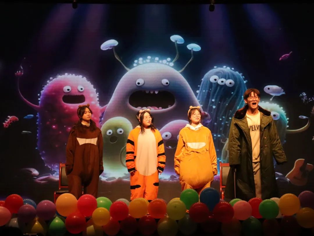 气球缤纷,灯光璀璨,交错闪烁,布置精美