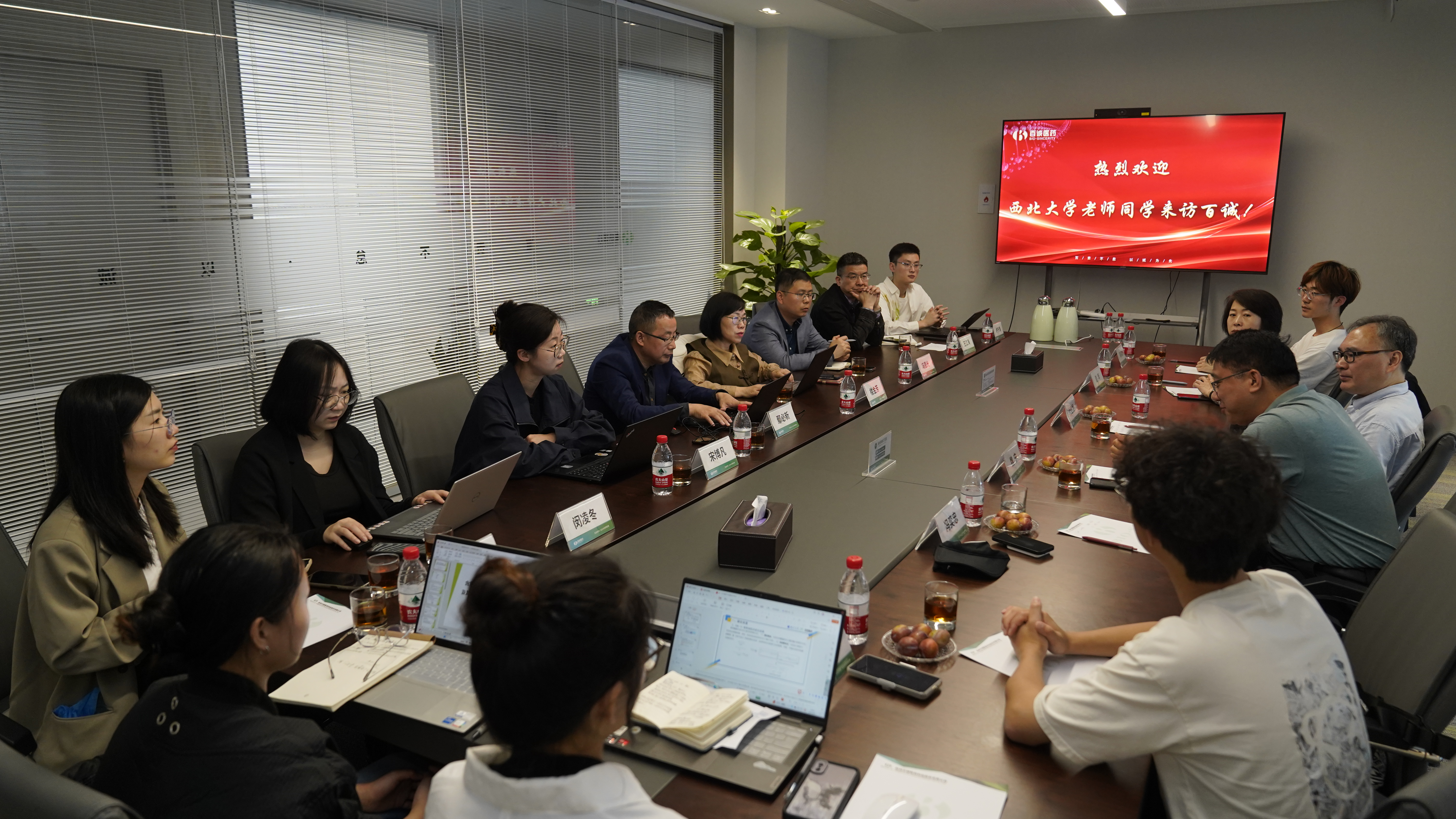 百诚医药调研中,学院1986级校友、百诚医药董事长楼金芳等热情接待,对学院老师们的到来表示欢迎,大家一起参观了百诚医药的实验室与办公环境,进一步了解了公司文化与运营模式。座谈会上,楼金芳董事长深情回顾了在学院求学、与学院合作的情谊,希望双方在技术研发、人才交流等方面开展更加深入的合作,同时能进一步深化研究生联合培养,实现双方资源共享、优势互补、合作共赢;付爱根院长希望双方继续发挥各自优势,在人才培养、项目开发、学术交流、创新应用等方面进一步建立长期战略合作关系,加快形成教育链、人才链与产业链、创新链良性互动的发展格局。双方围绕科研合作、毕业生就业、人才输送、联合培养研究生教育管理工作进行了深入交流。