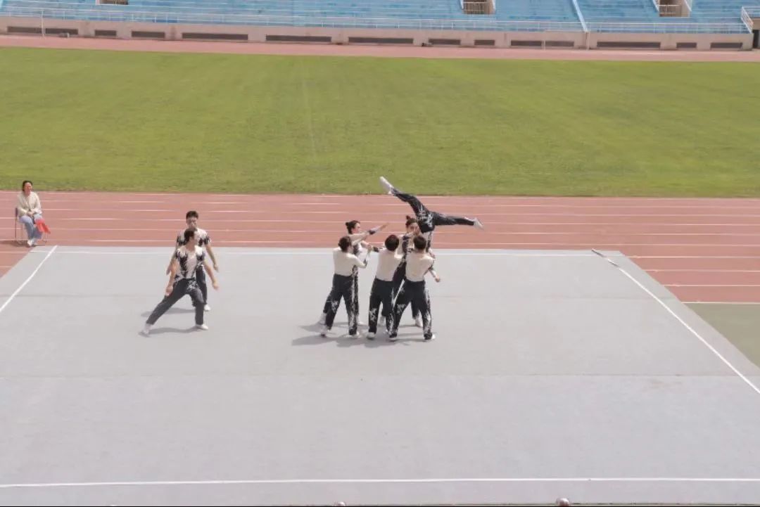 观众们的目光紧紧跟随着他们的身影,最终,当音乐落定,他们以完美的姿态定格在舞台上,全场爆发出热烈的掌声和喝彩声,评委也为队员们的出色表现而点头称赞,给予了他们9.46分的好成绩。他们的身影在春日的阳光下熠熠生辉,成为了操场上一道靓丽的风景。