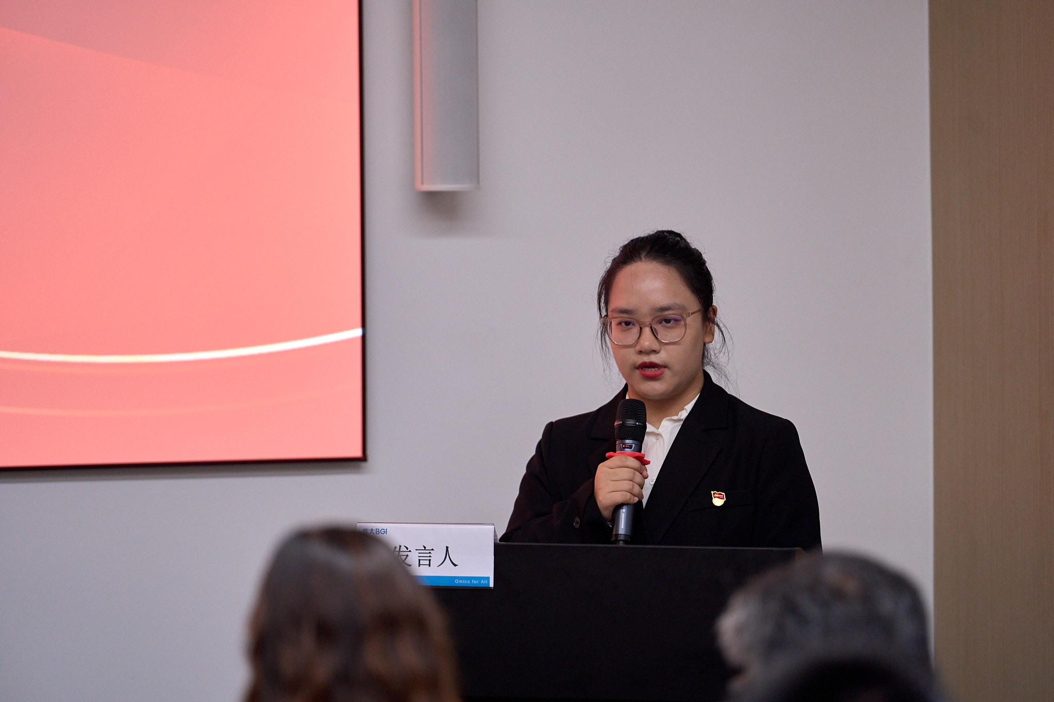 第三届华大创新班班长刘毓涵围绕“健康生活、开拓眼界、提升科研”三个方面,分享了同学们联合培养以来的学习、科研与生活经历,对母校与为华大创新班辛勤付出的领导老师表示感谢。学生代表郭兰以“成长在创新班”为主题,围绕“科研学习、华大生活、自身成长”三个方面,分享了自己在华大学习成长的感受与收获。