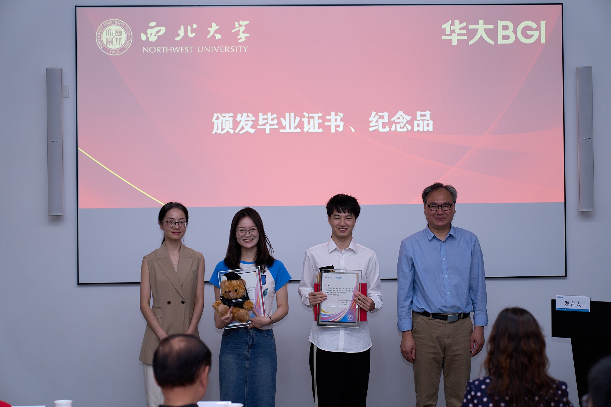 5月10日,第三届华大创新班毕业典礼在深圳华大集团总部时空中心隆重举行。副校长曹蓉,华大集团联合创始人、监事长刘斯奇,华大教育中心副院长高强、肖敏凤,我校党委组织部副部长、党校副校长杨红涛,学生工作部副部长赵金哲,团委书记刘博,教务处副处长倪小勇,学院院长付爱根、刘文哲教授、副书记魏宁、副院长张亚妮出席典礼,华大集团导师代表、创新班辅导员、相关部门负责人和第三届华大创新班毕业生参加活动。典礼由华大教育中心学生与合作部部长王林鹏主持。