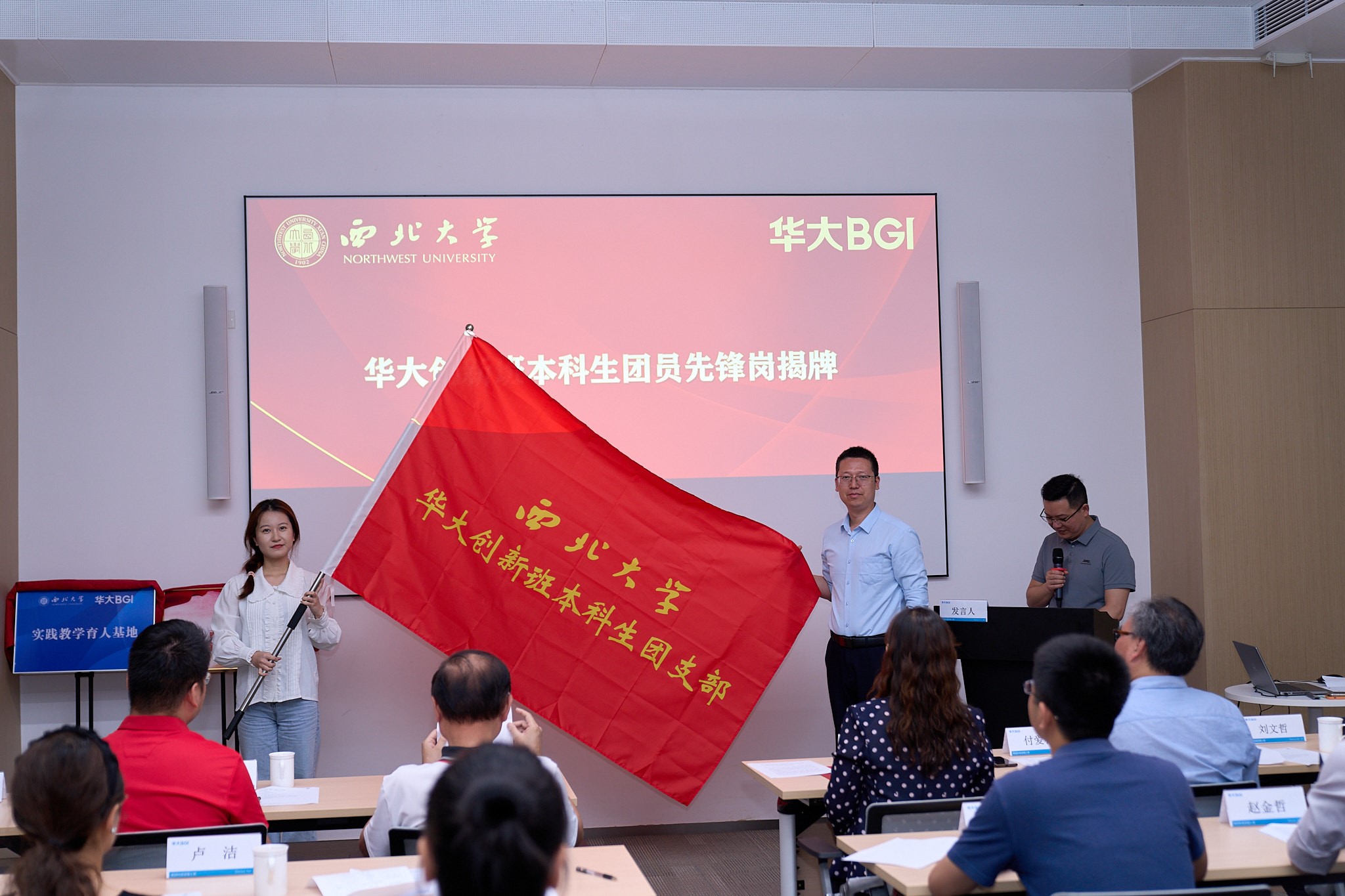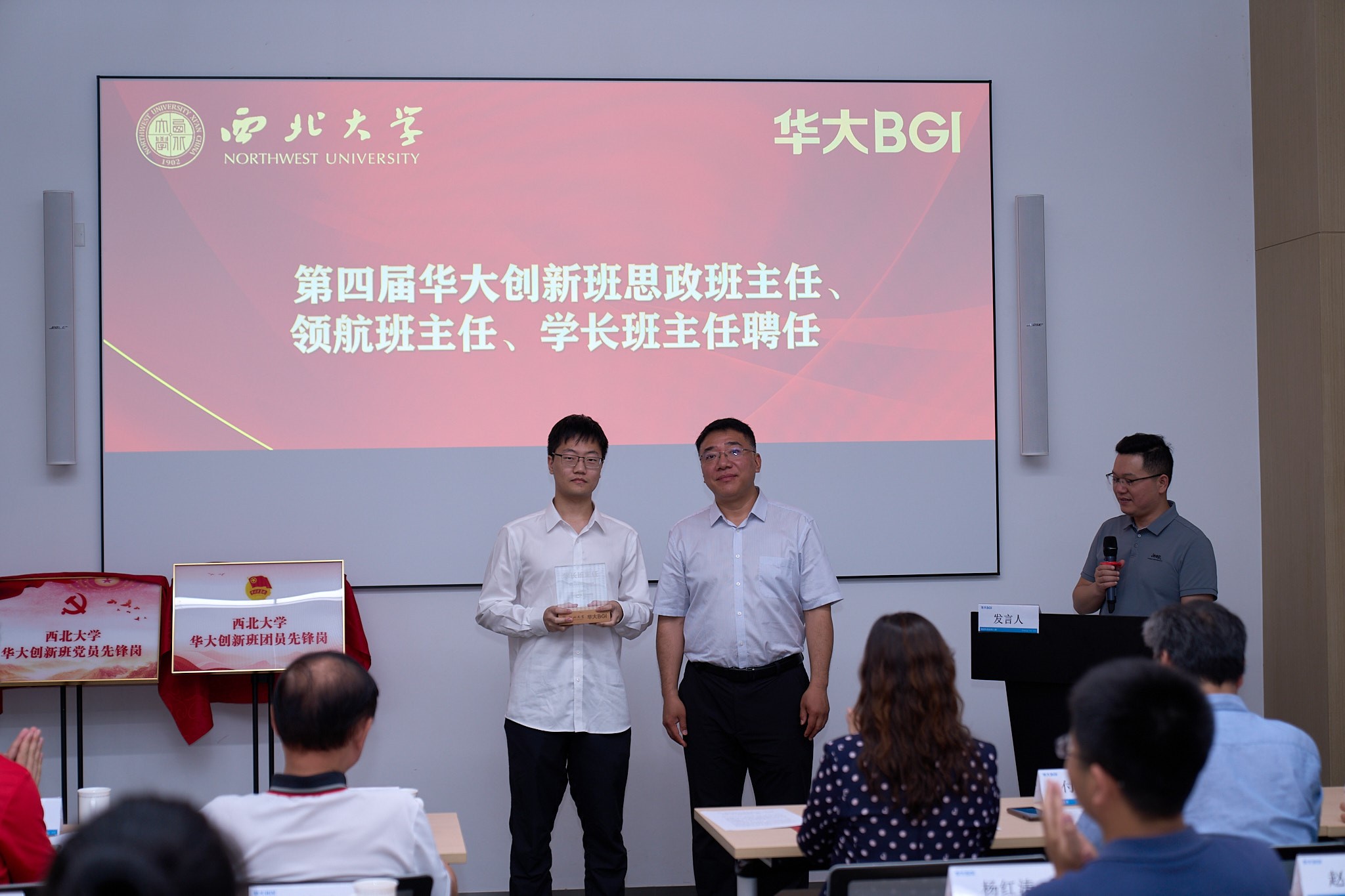 典礼上,新一届华大创新班学生代表冯晓宇分享了感悟,华大集团向毕业生颁发华大创新班毕业证书、发放纪念品,我校向毕业生颁发毕业纪念书,为第四届华大创新班思政、领航、学长班主任颁发聘书。双方为实践教学育人基地、华大创新班党员先锋岗、团员先锋岗揭牌授旗,互赠纪念品,签订双方人才培养合作协议。