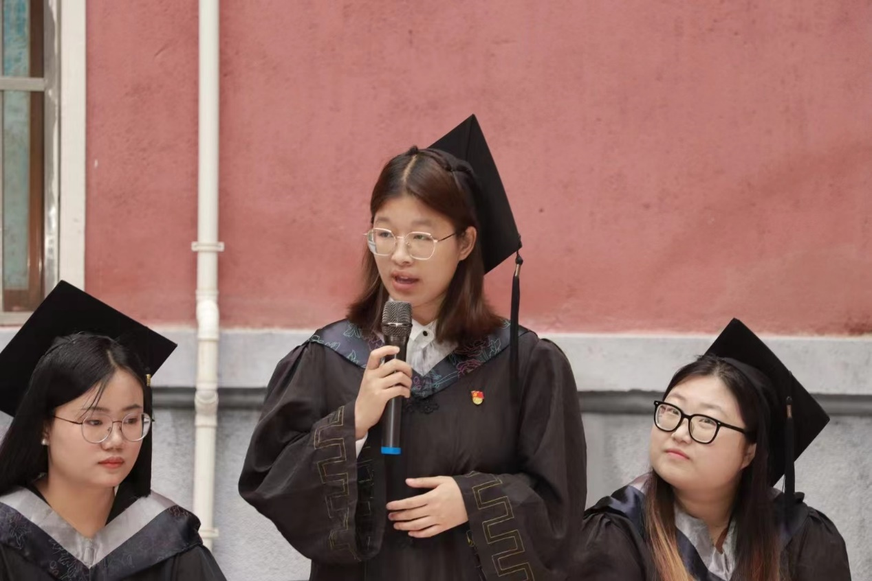 拥有30年党龄的老党员刘文哲教授为全体毕业生党员深情讲述自己的“入党故事”,并勉励大家永葆奋斗精神,保持积极心态,守住道德底线,常怀感恩之心,期待大家以优秀校友的身份重返母校、重返母院。